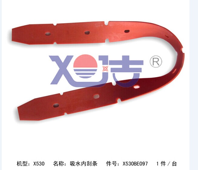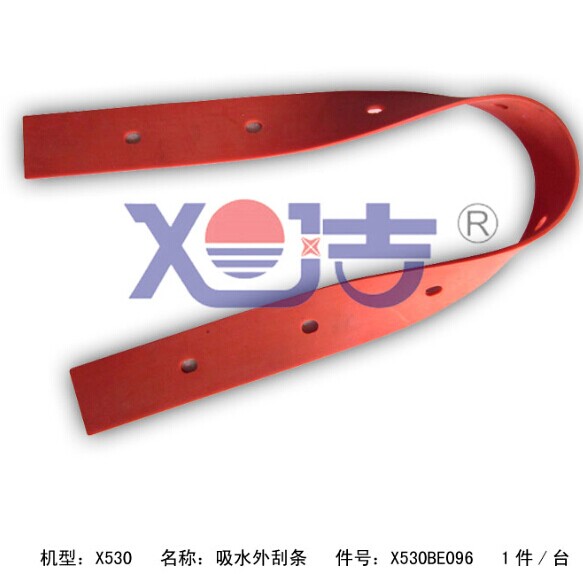 洗地机的吸水扒上的胶条就是我们所说的吸水胶条,它的作用主要是用来与地面接触,产生一个密封的空间,把胶条从地面上刮出来的一些污水通过风机进行回收。吸水胶条是旭洁自动洗地机重要的配件。下图为旭洁X530的内外刮条图